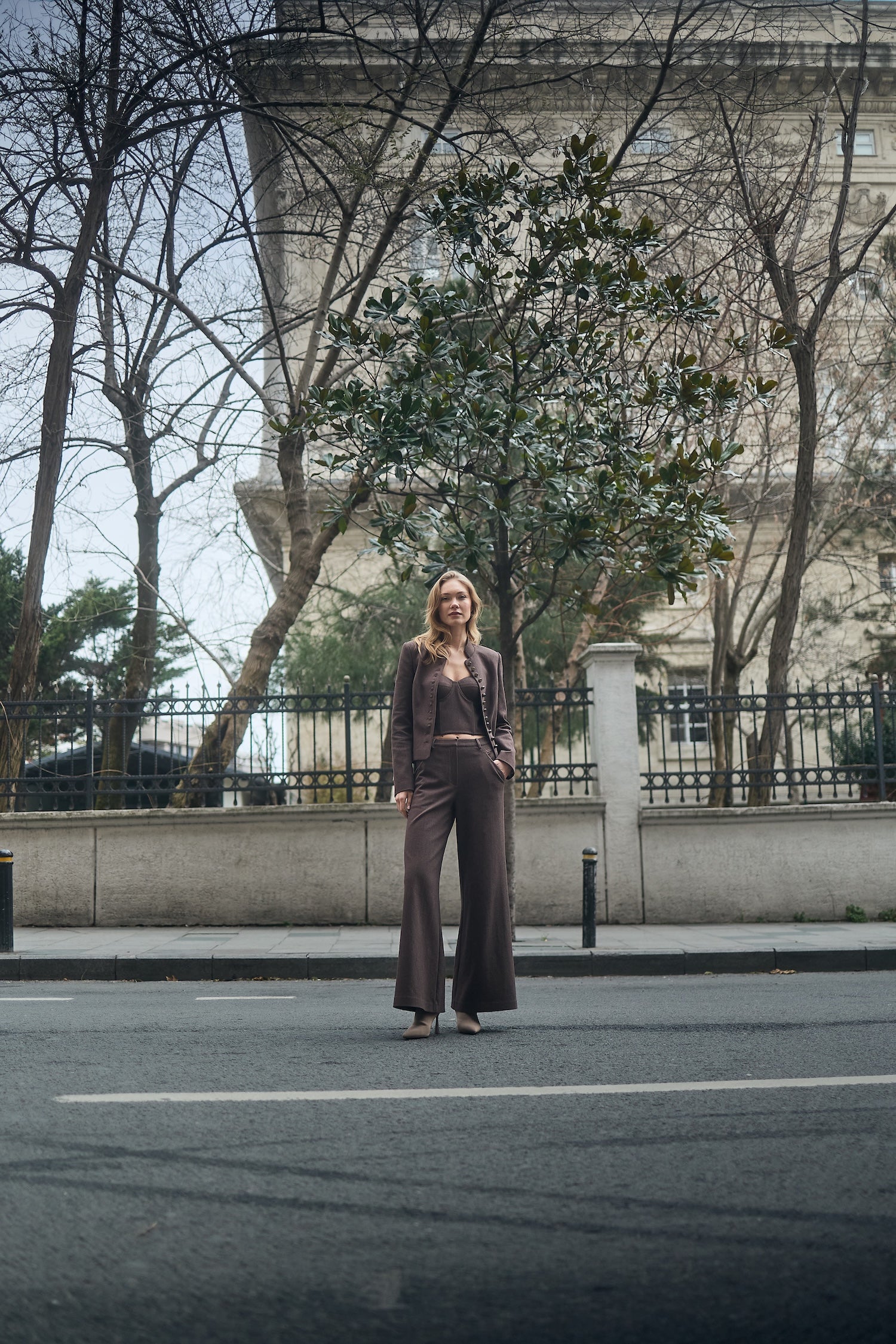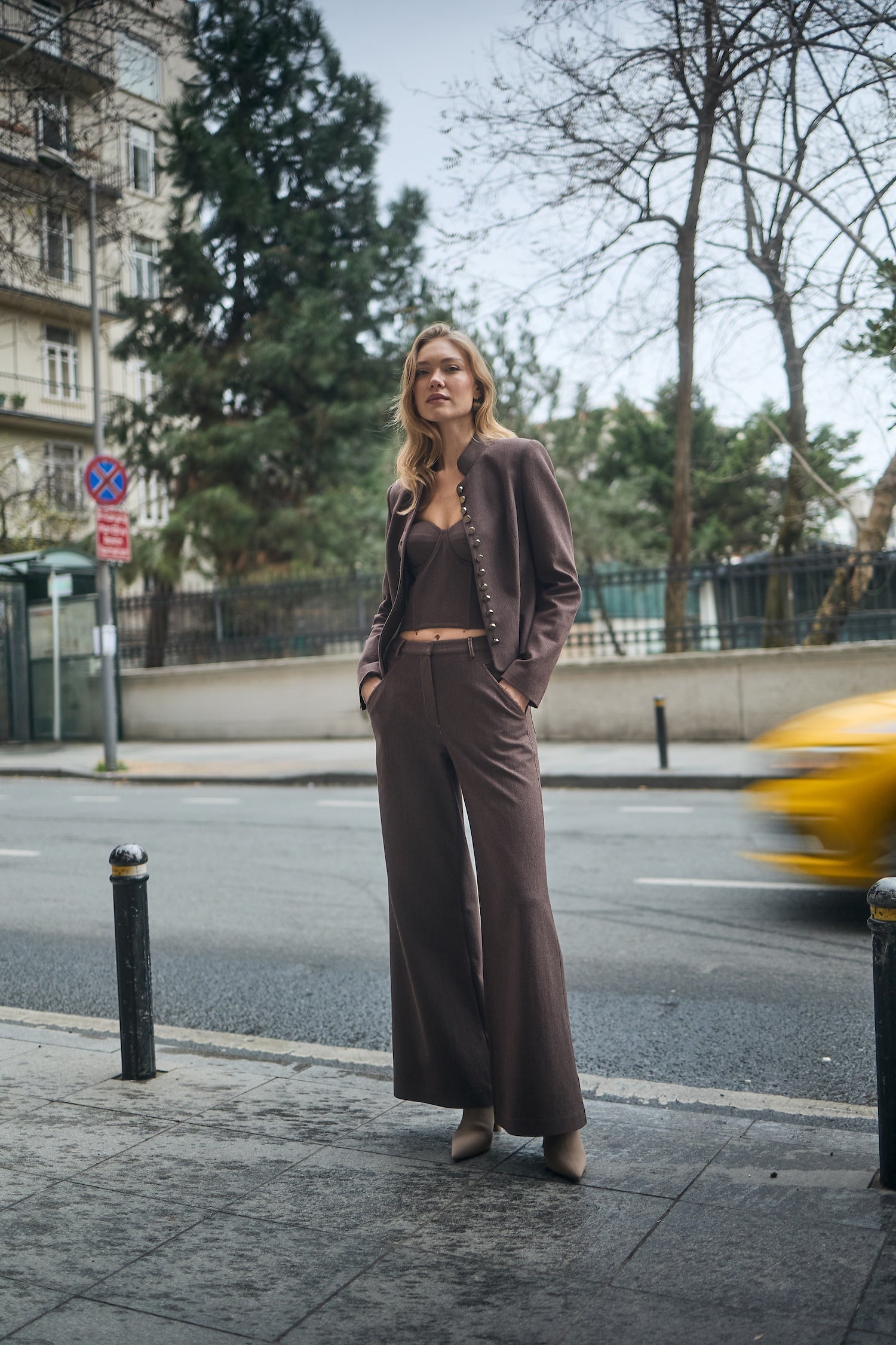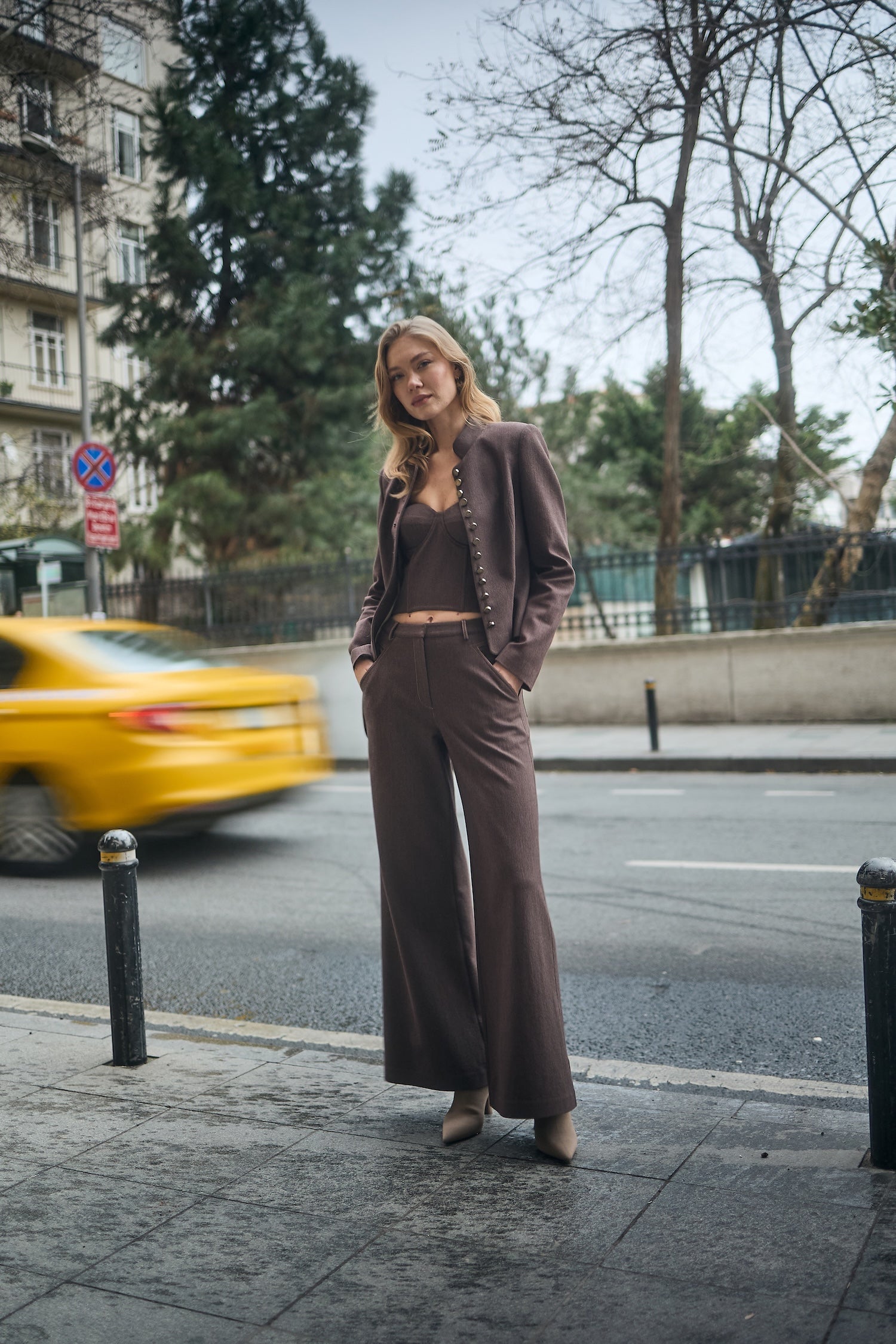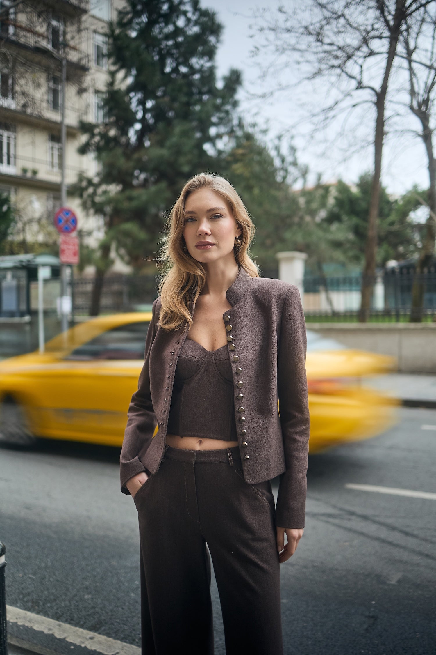Ceket-Büstiyer-Pantolon Kahverengi Jean Takım
