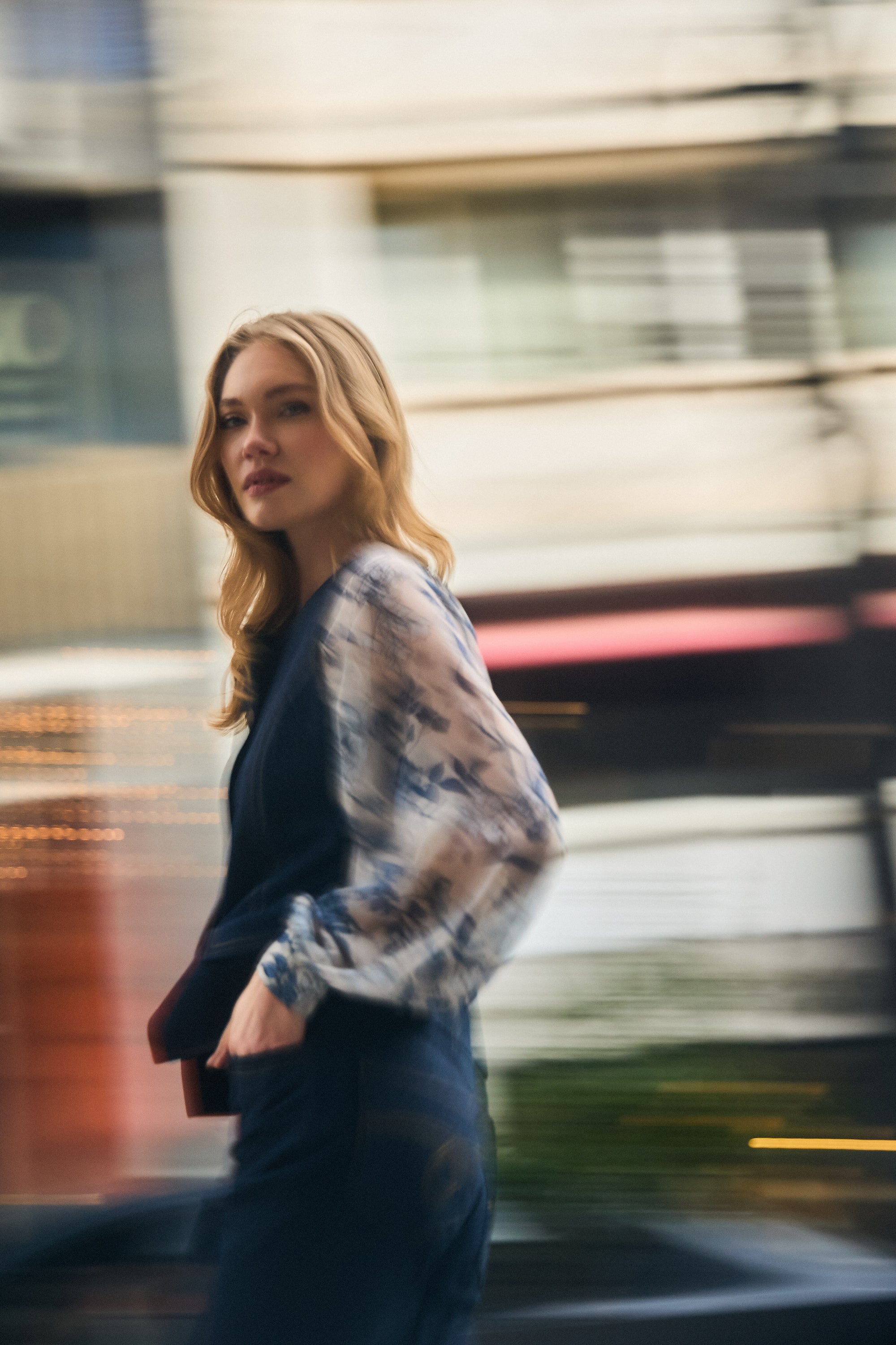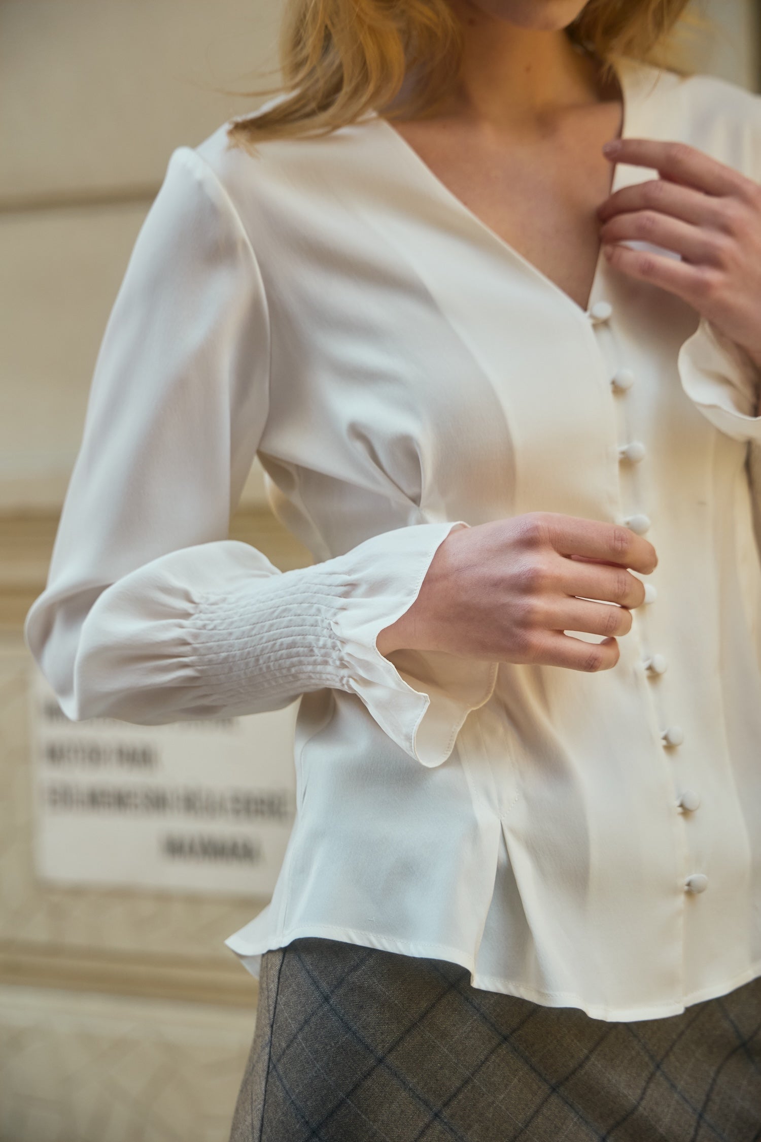 Nervür Kol Detaylı Ekru İpek Gömlek