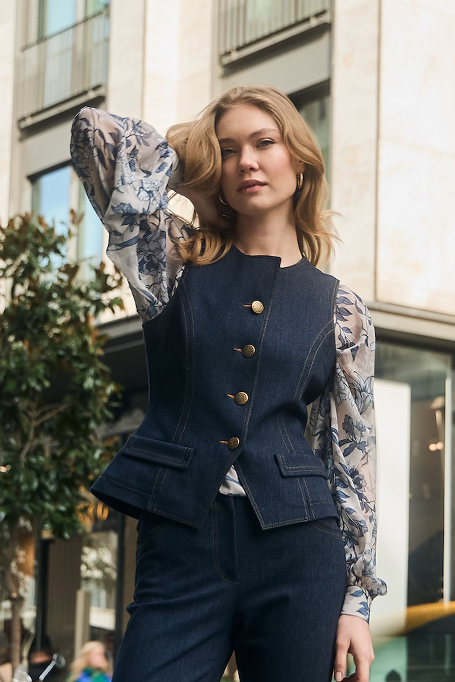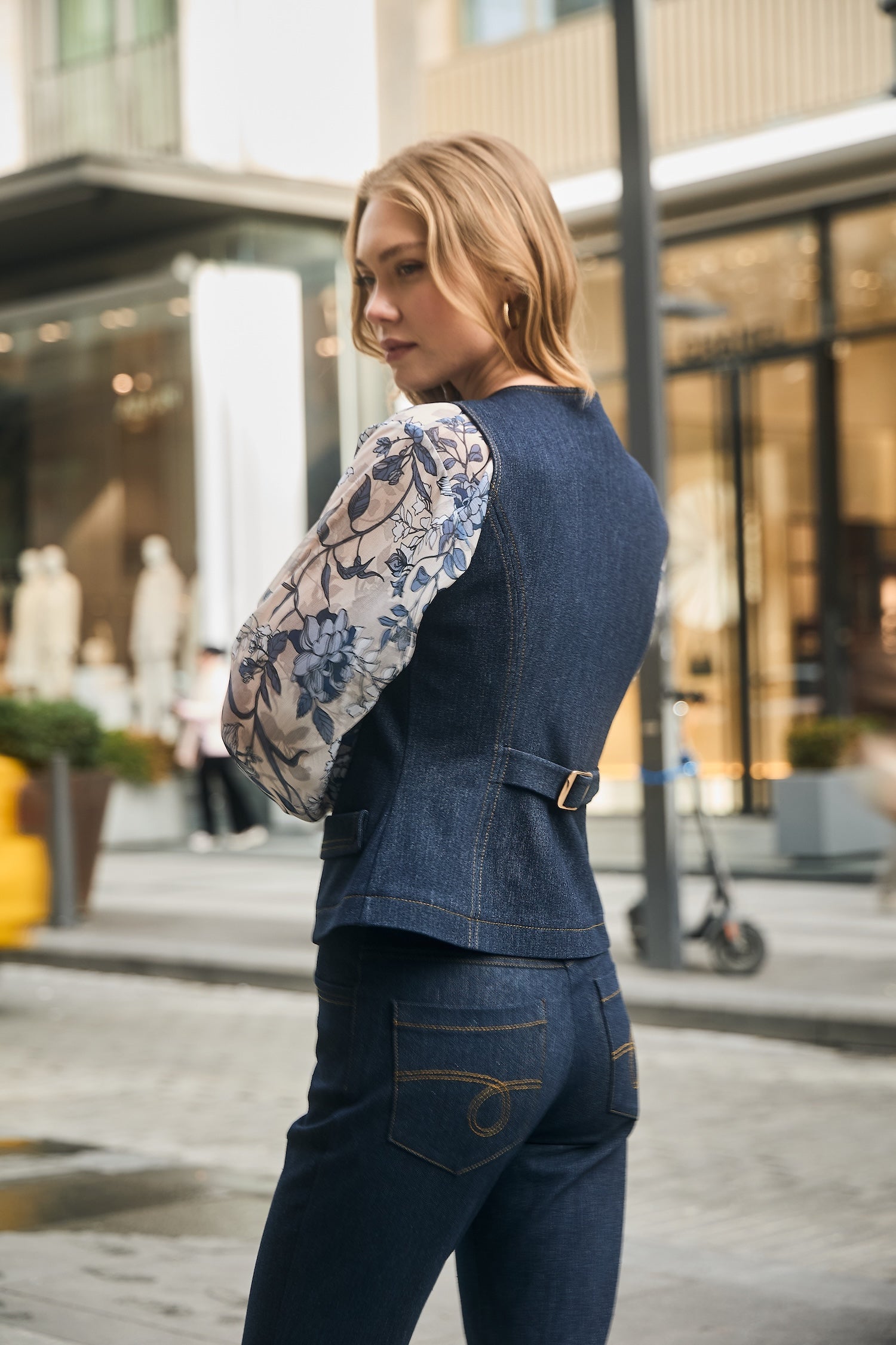 Aksesuarlı Dikiş Detaylı Düğmeli Likralı Jean Yelek