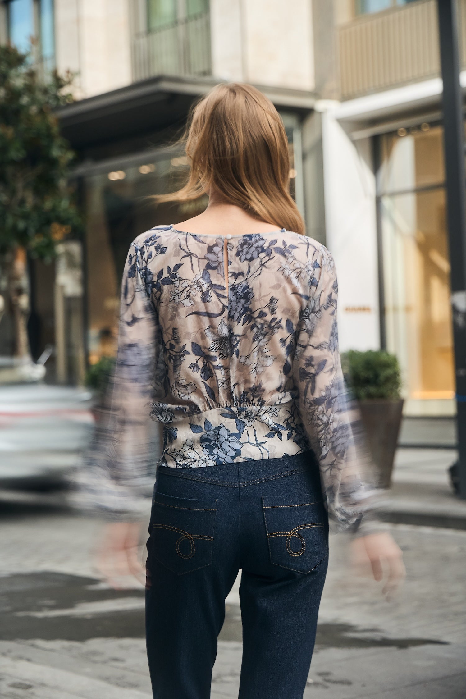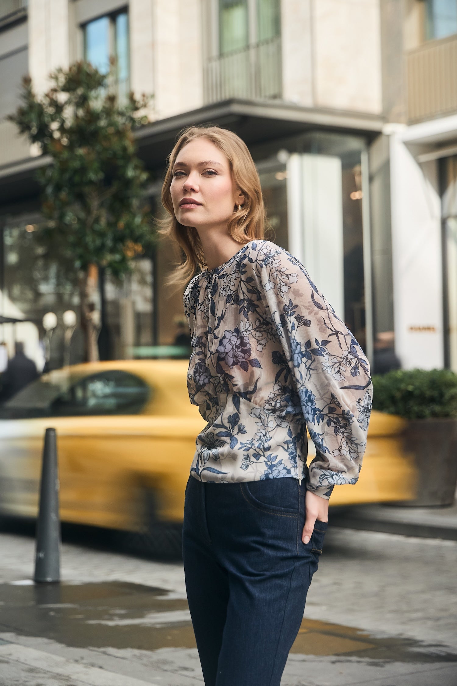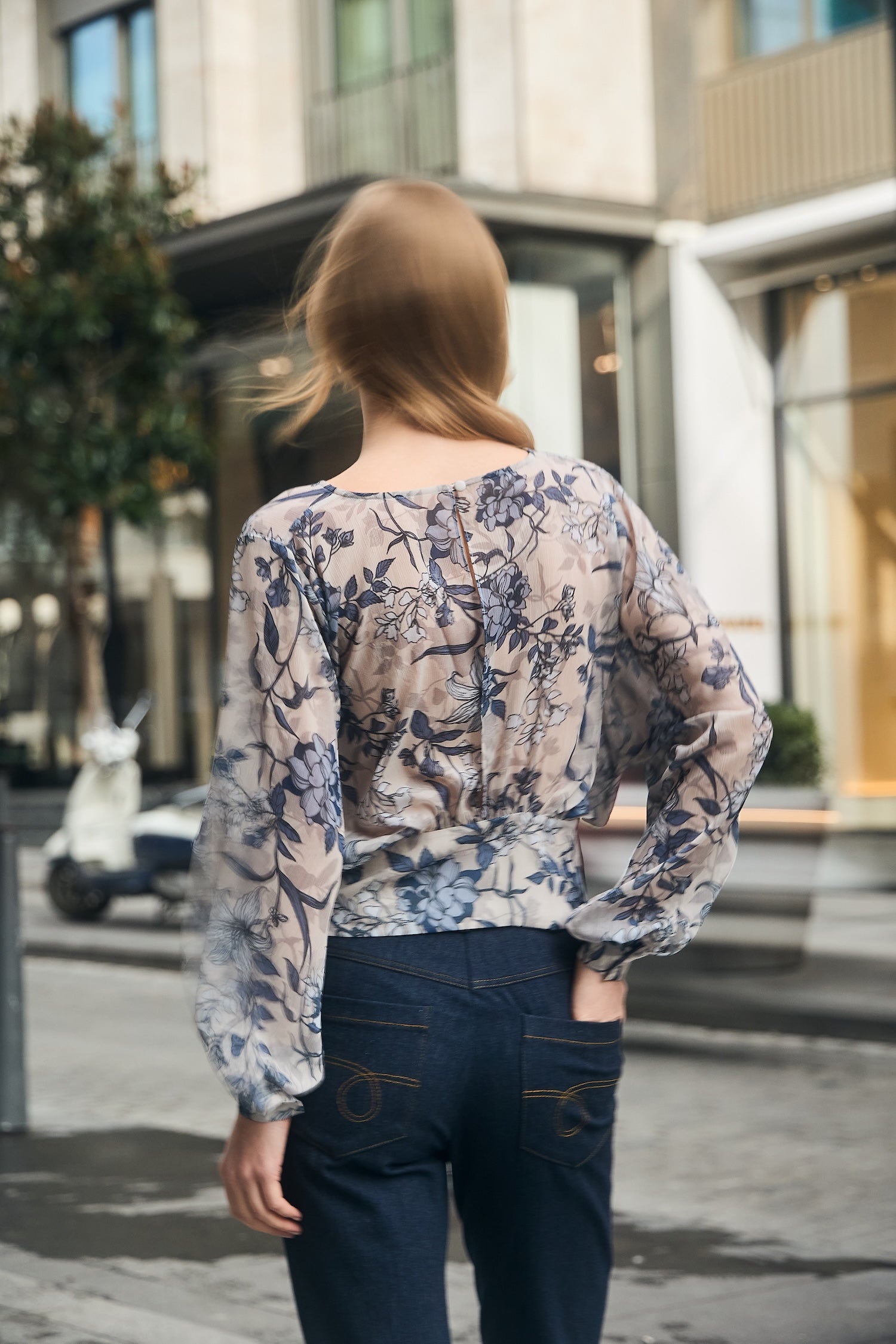 Balon Kol Sırt Detaylı Çok Renki Bluz