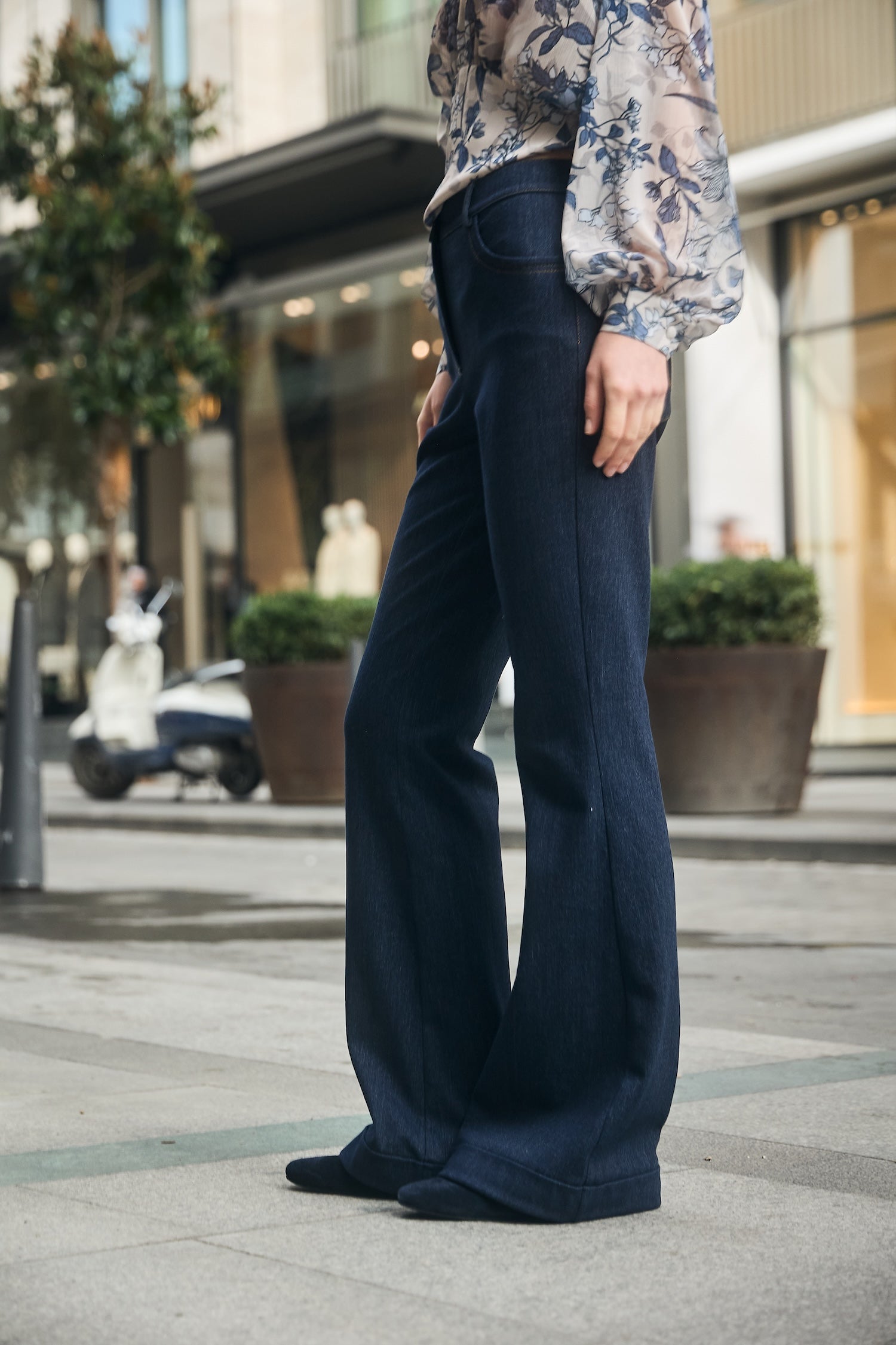 Dikiş Detaylı Dar Kesim Likralı Navy Jean Pantolon