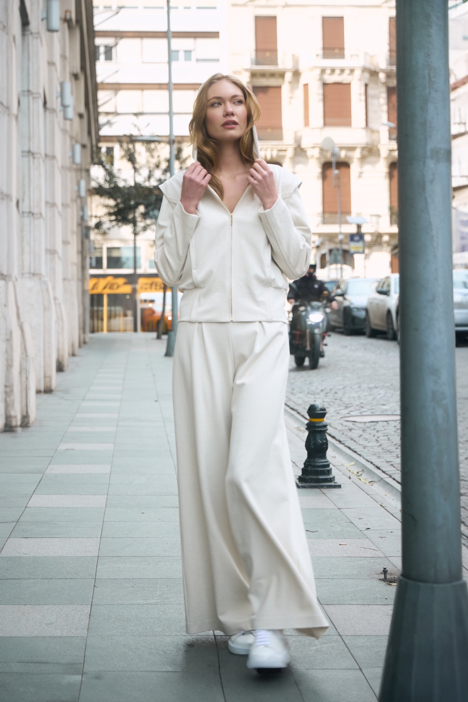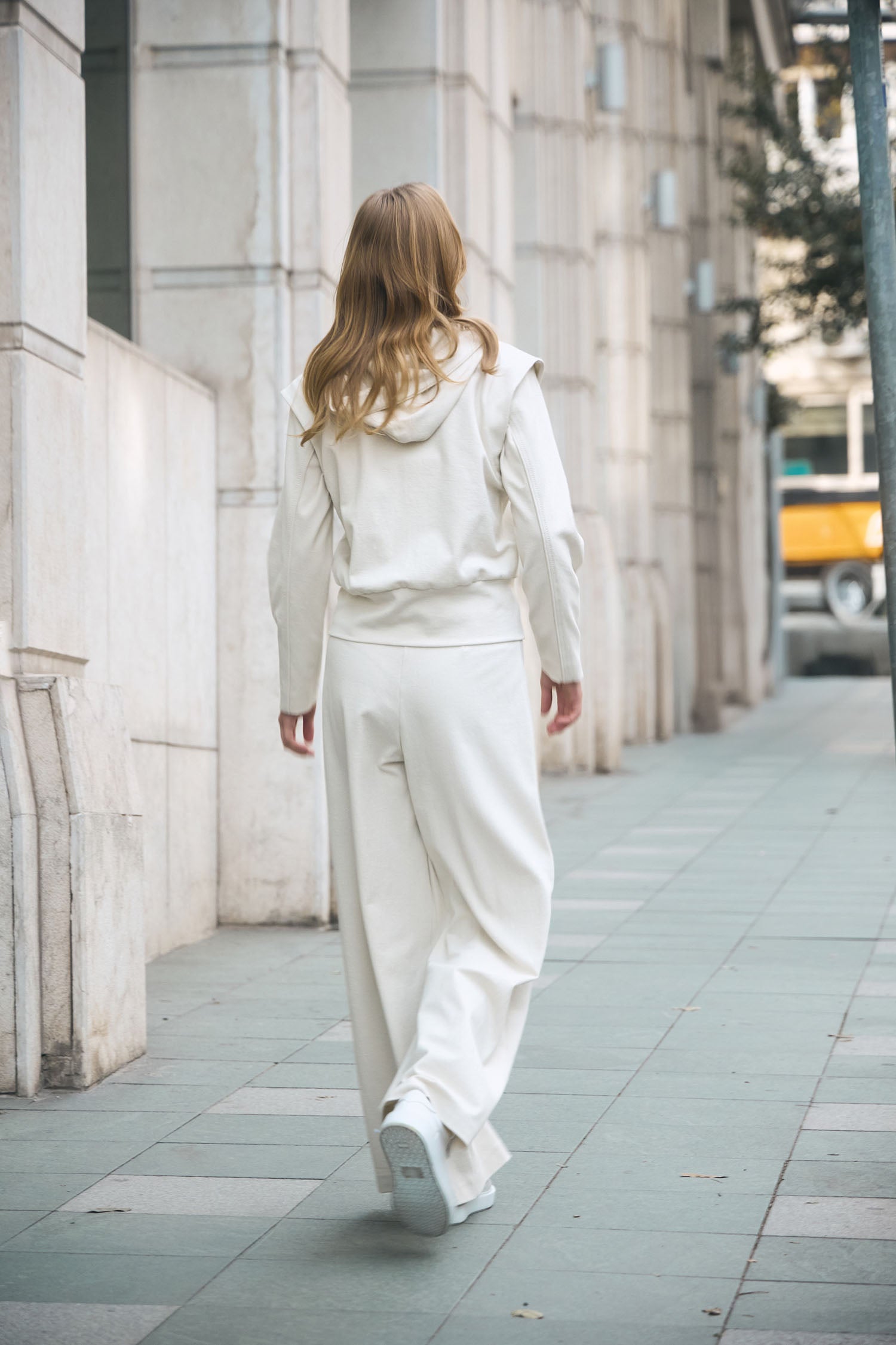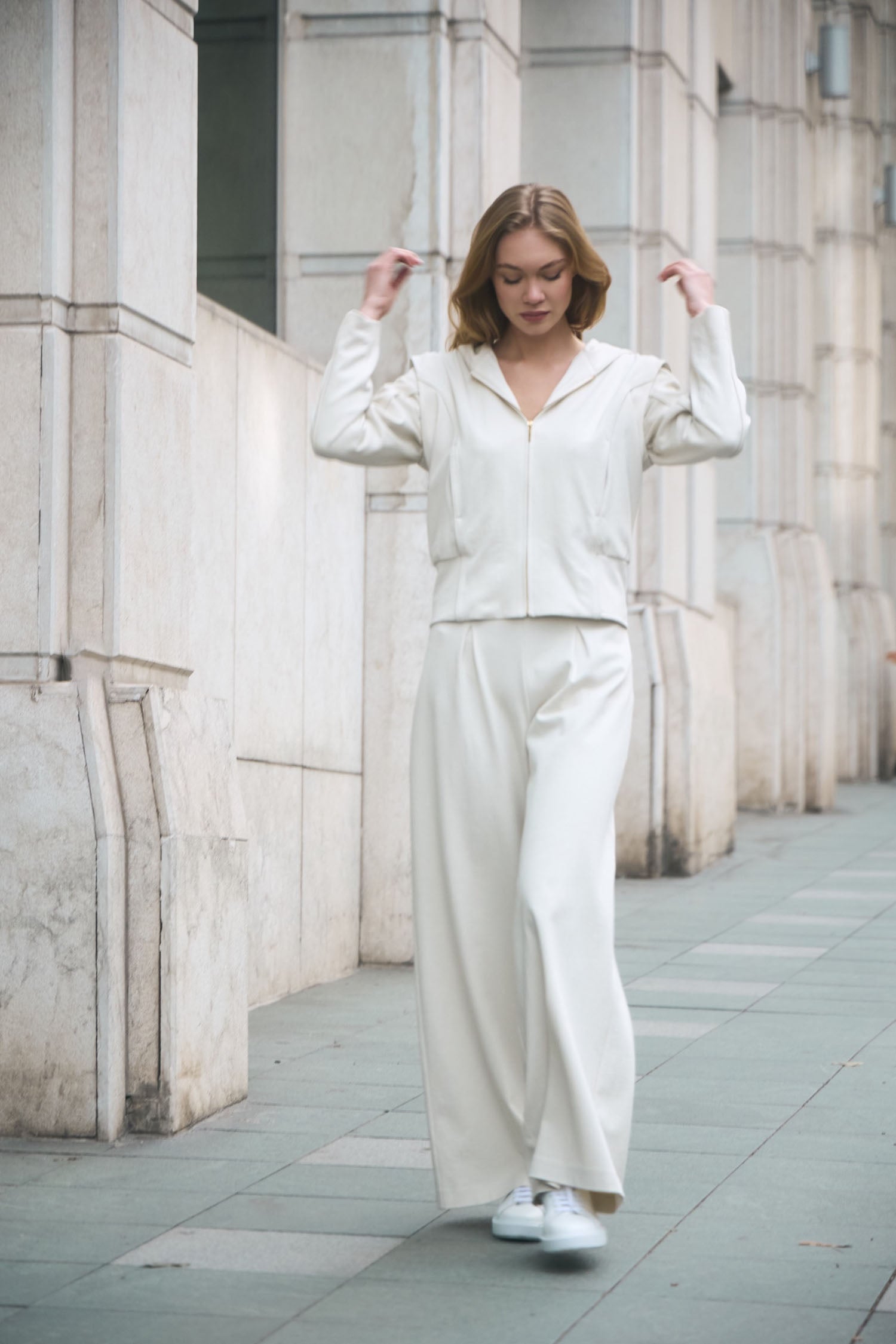 Kapüşonlu Ekru Jean Ceket - Pantolon Takım