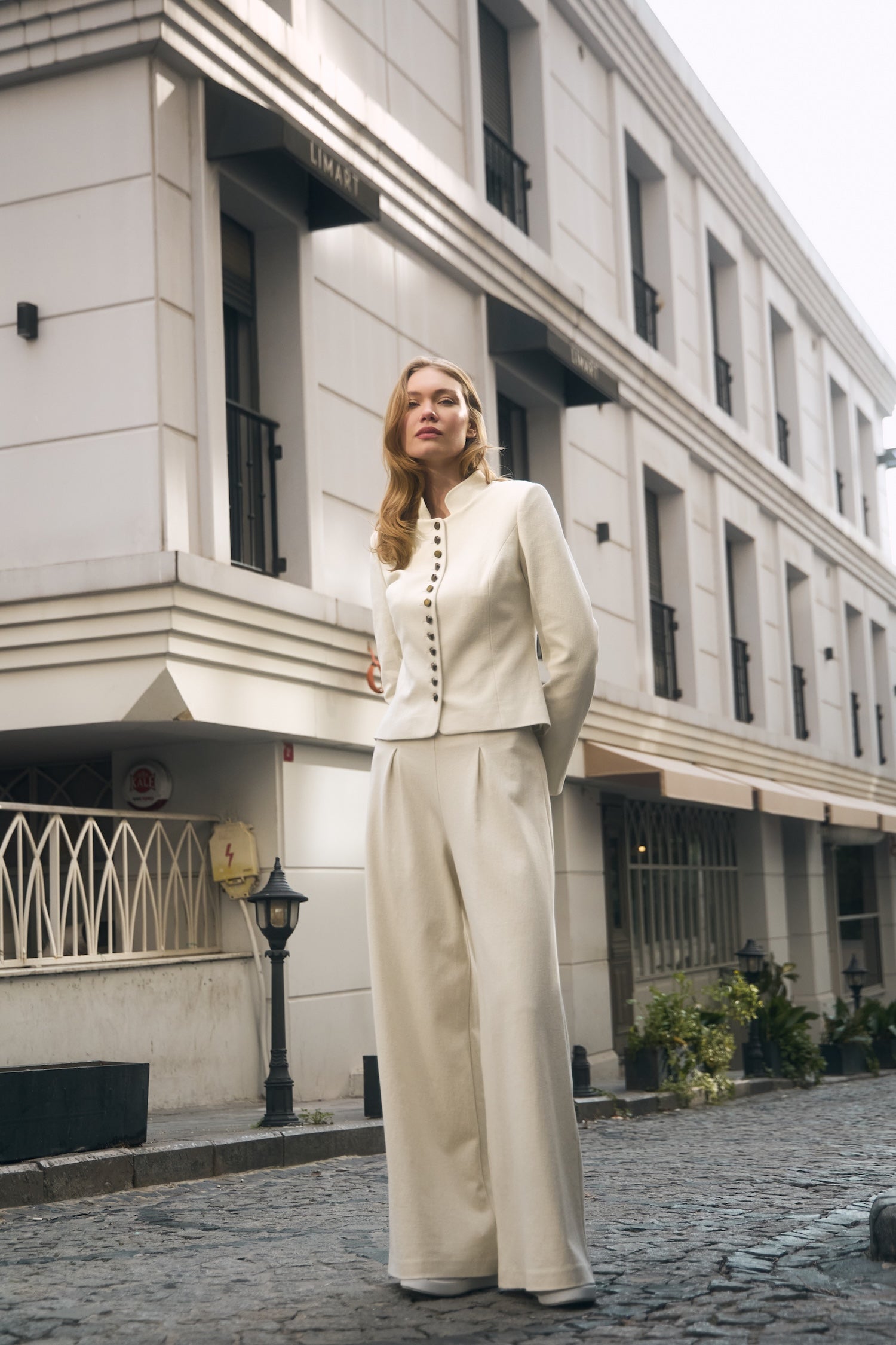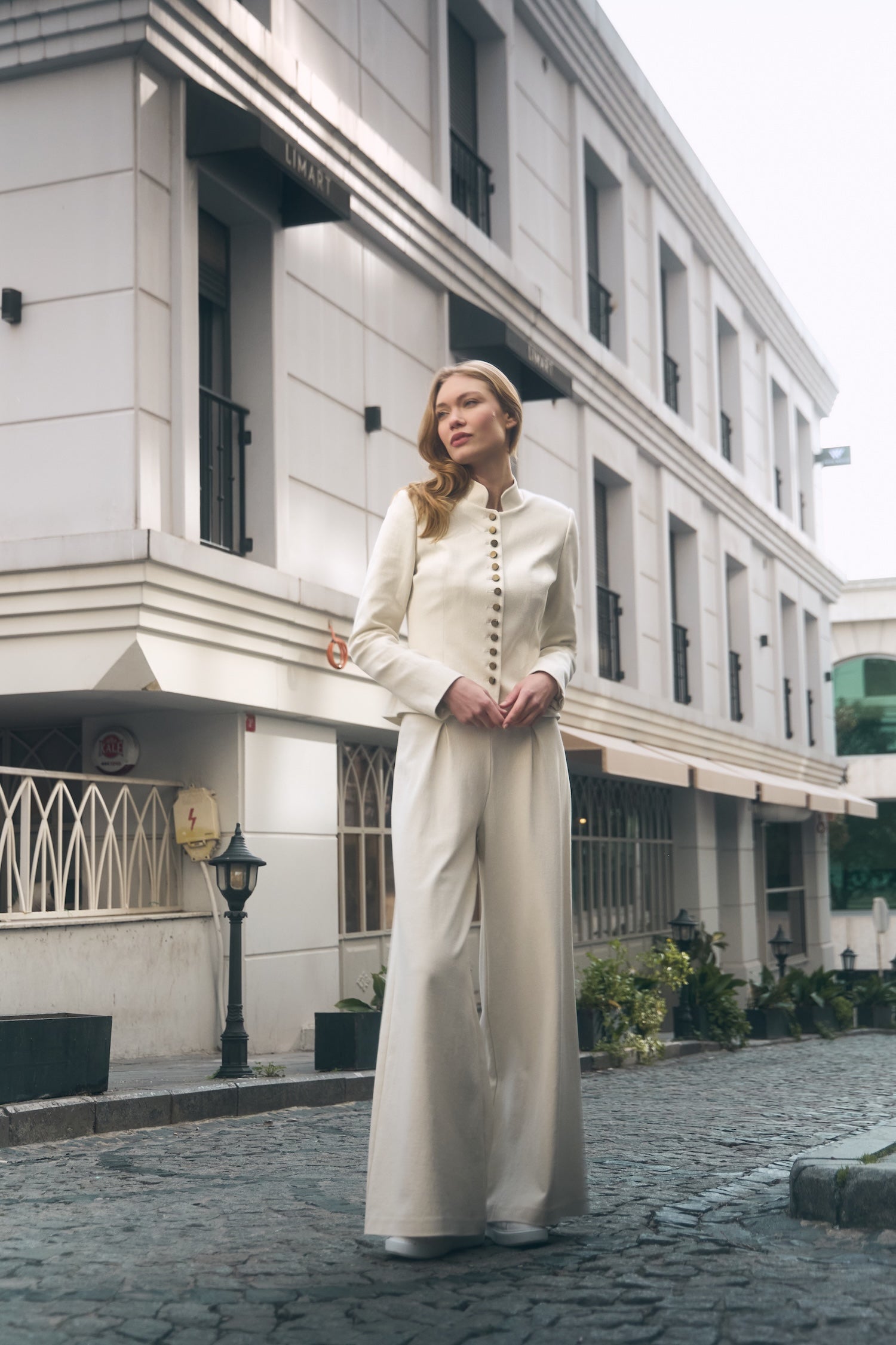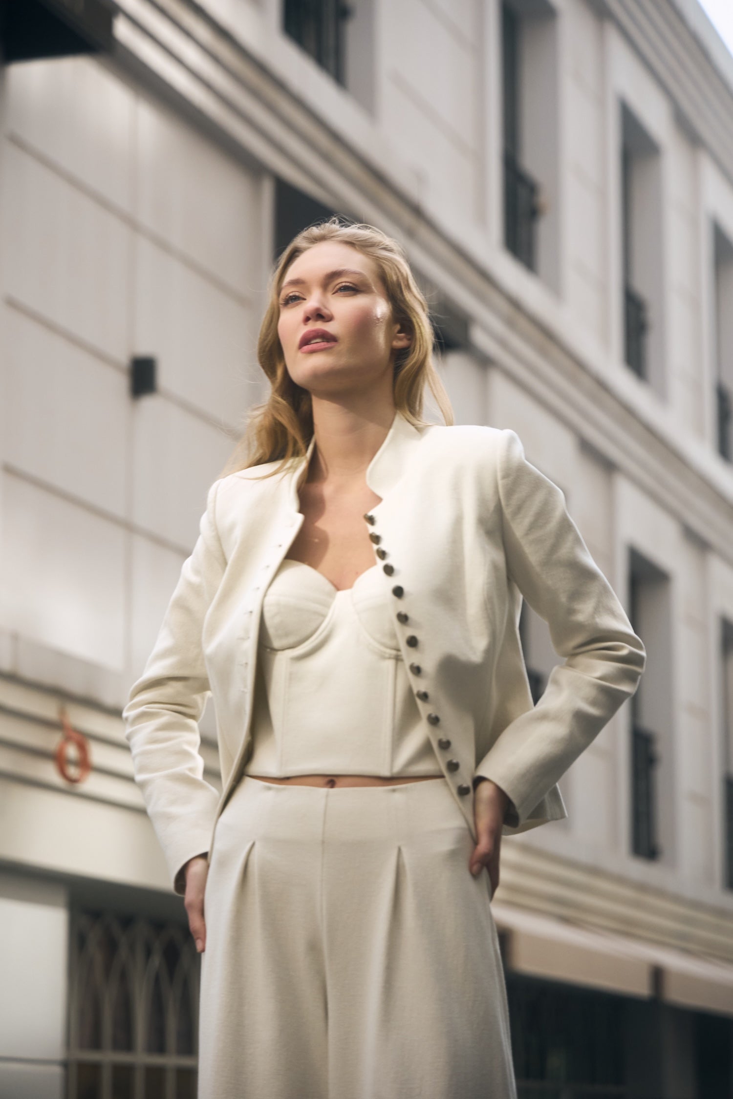Ceket-Büstiyer-Pantolon Jean Takım Ekru