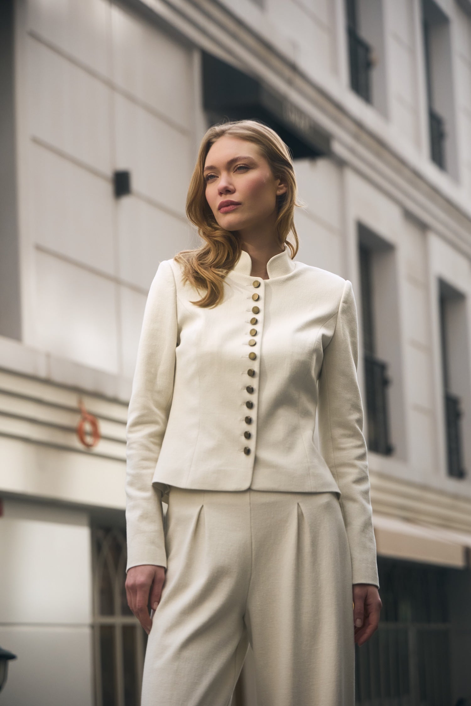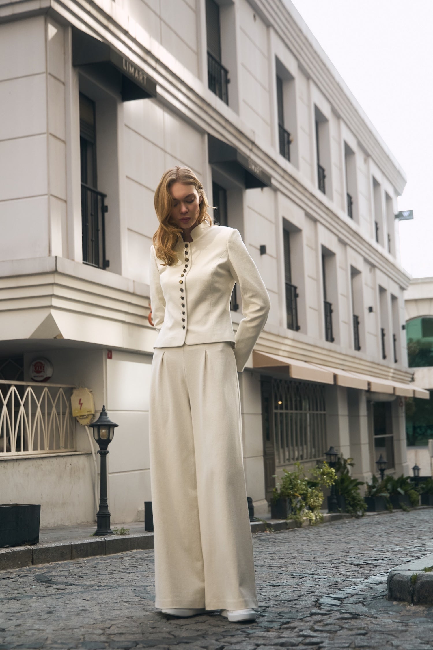 Gold Düğme Detaylı Ekru Fit Jean Ceket