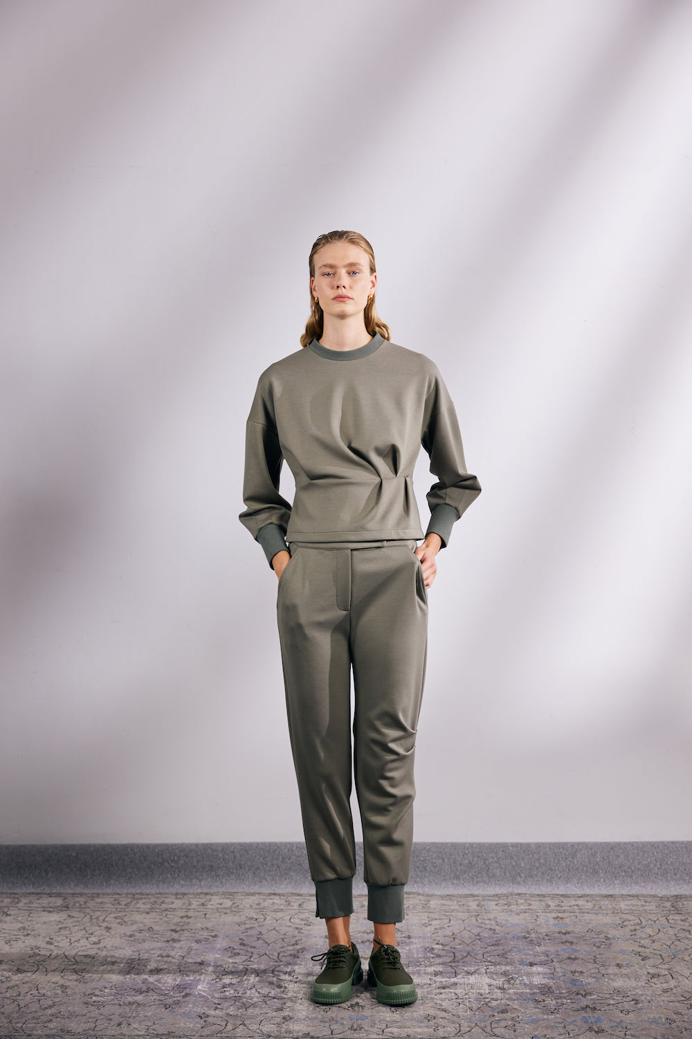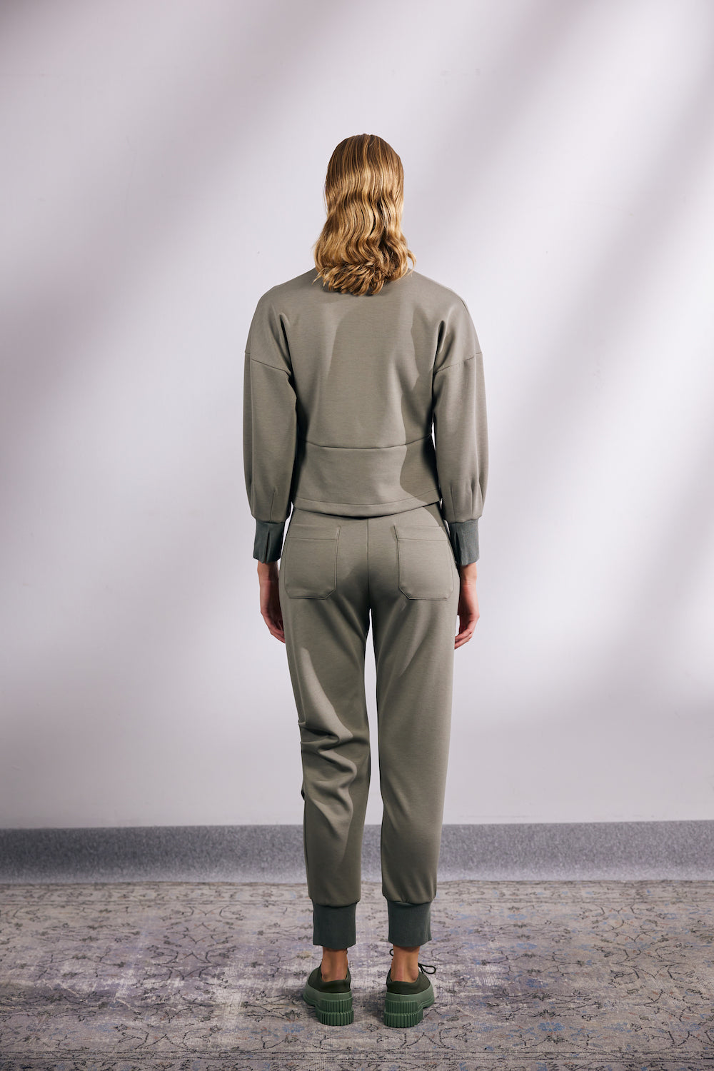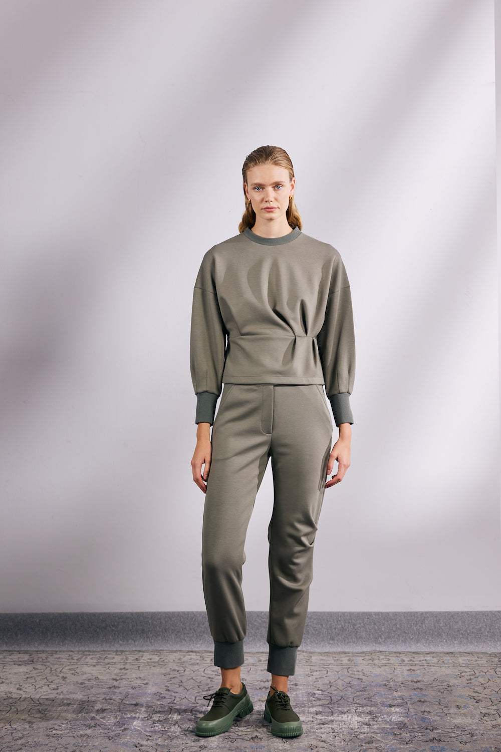 Ribanalı Büzgü Detaylı Haki Eşofman Altı