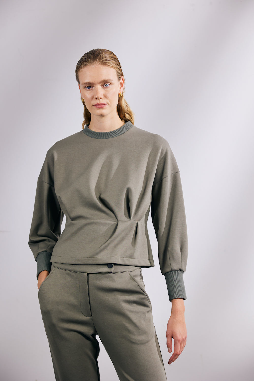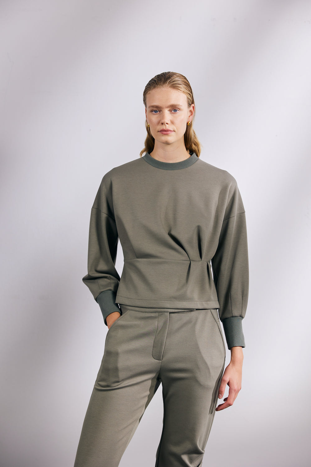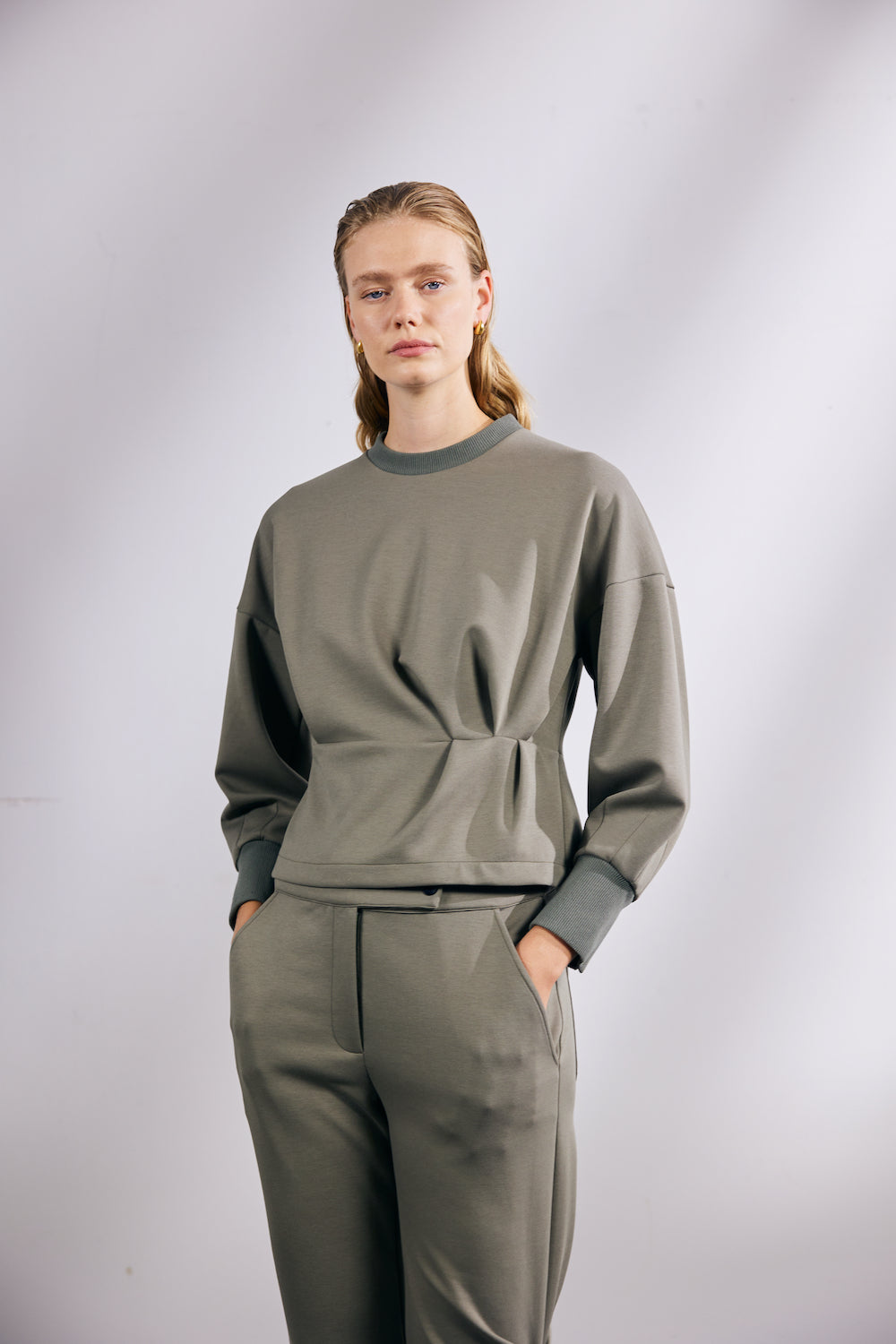 Ribanalı Büzgü Detaylı Ekru Sweat