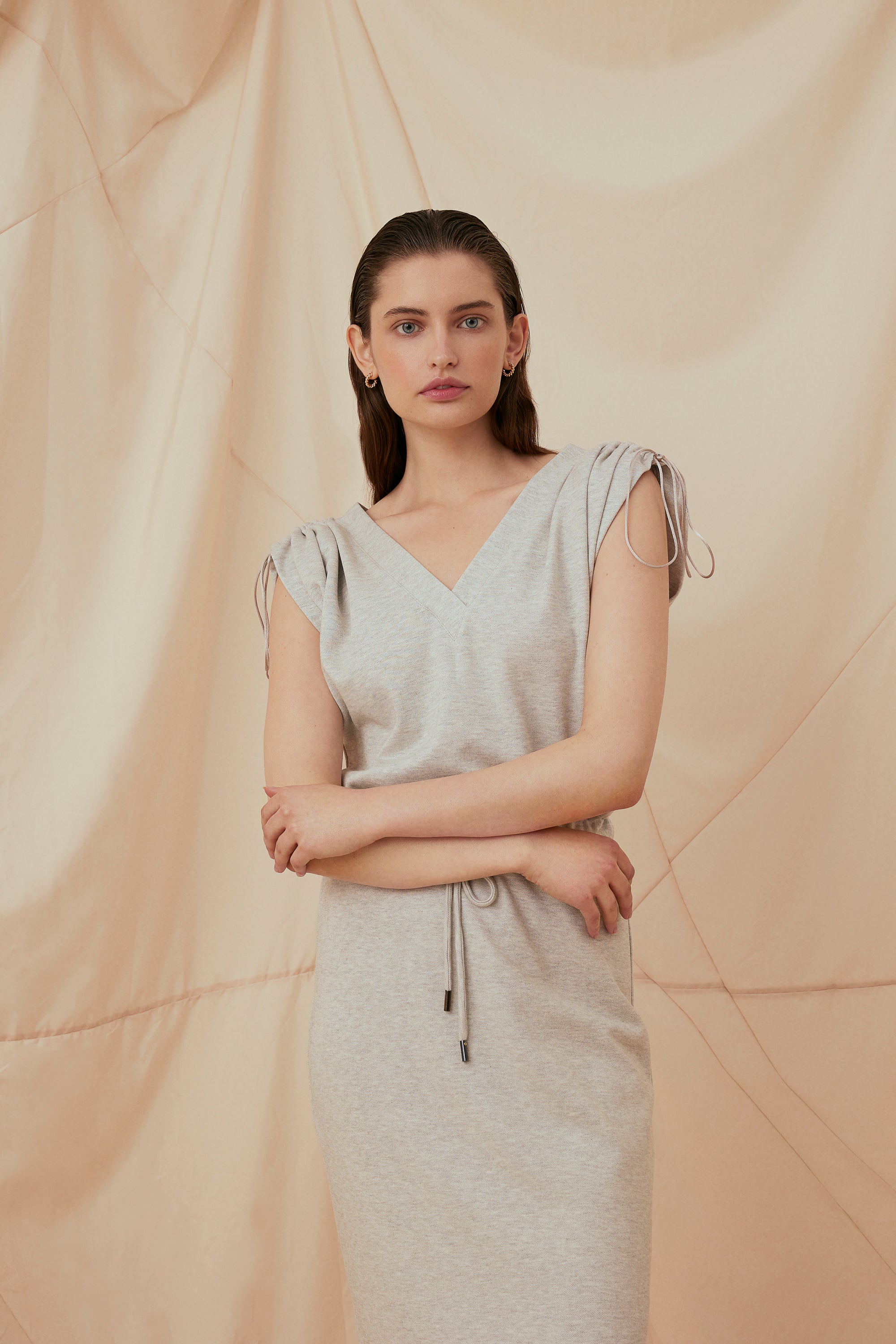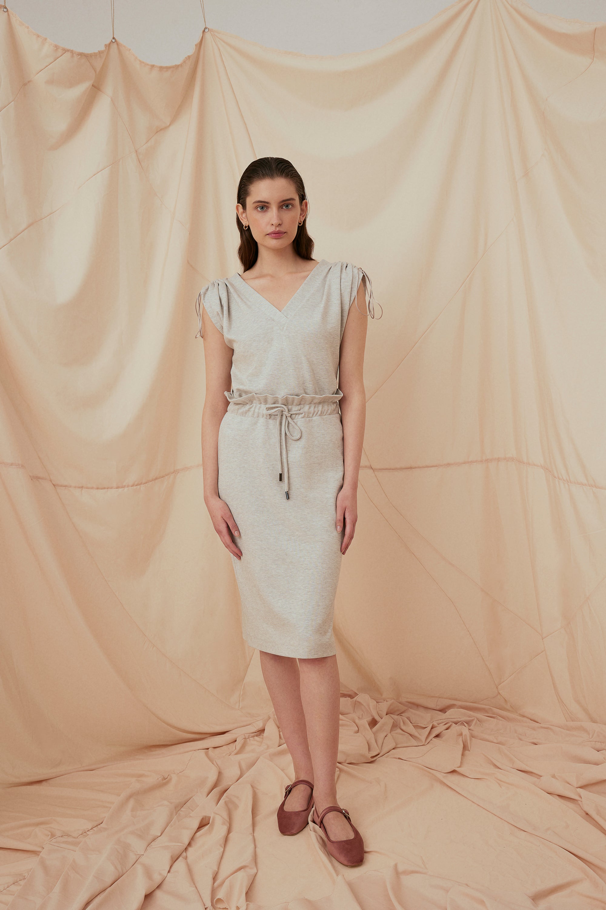 Yırtmaç Detaylı Büzgülü Crep Elbise