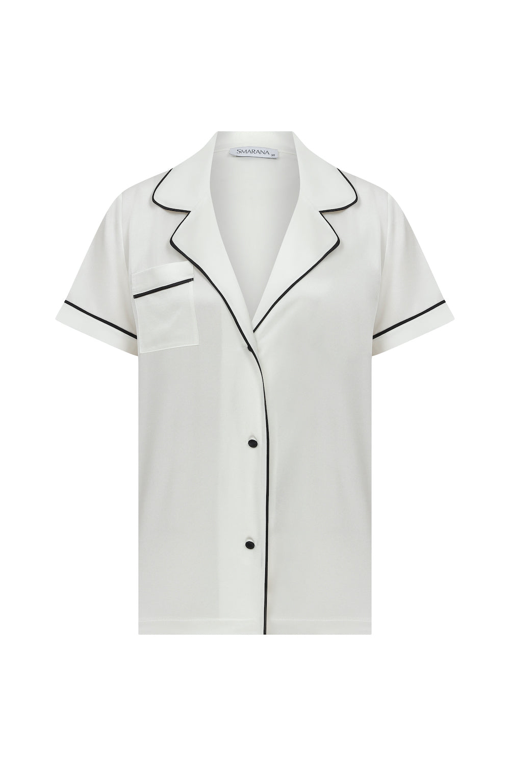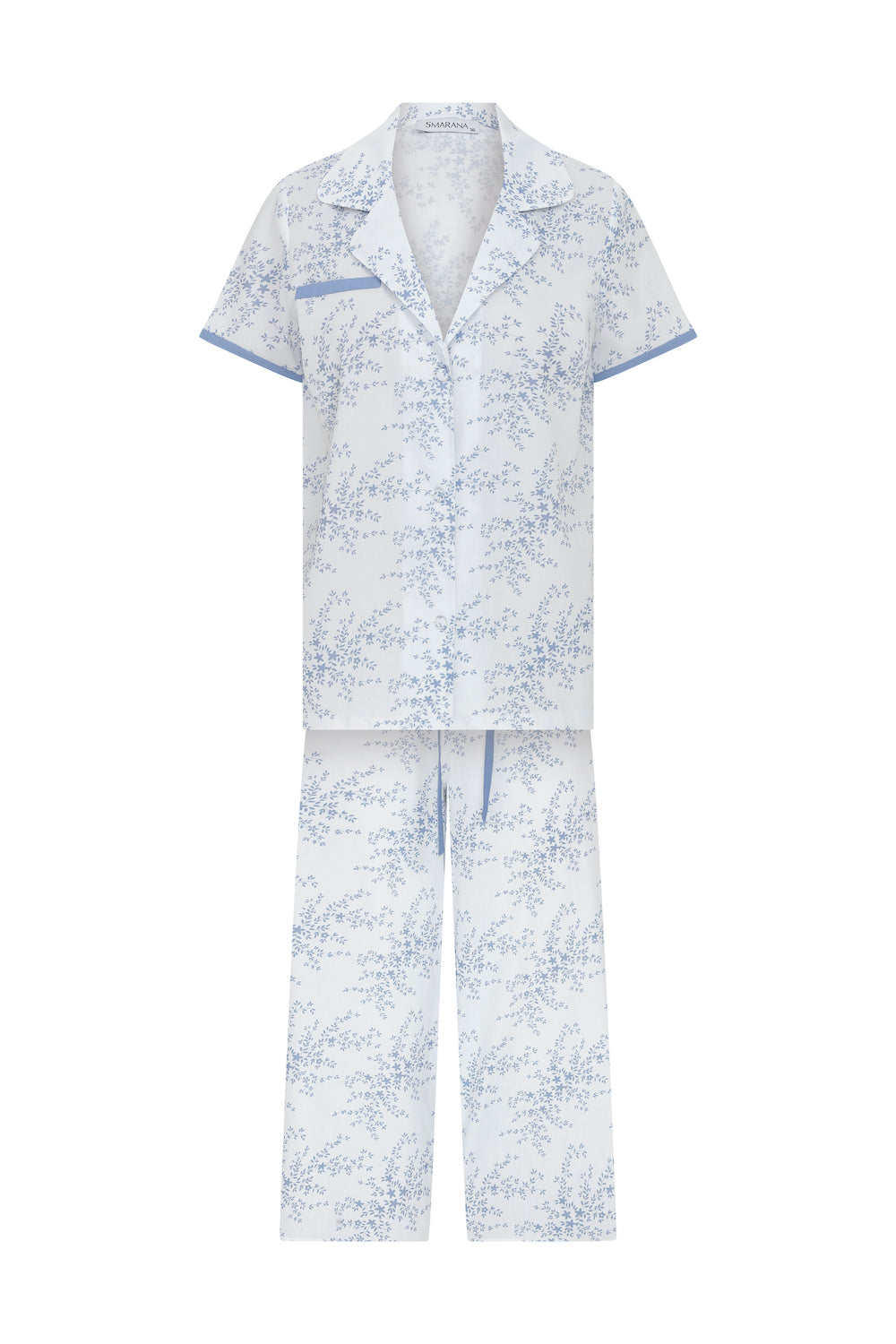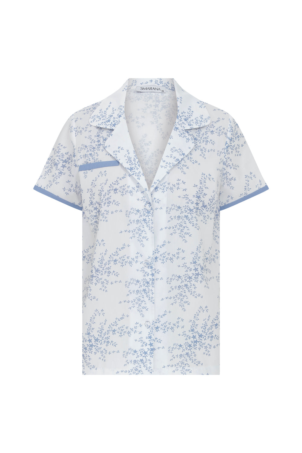 Çiçek Desen Cotton Biye Detaylı Pijama Üst