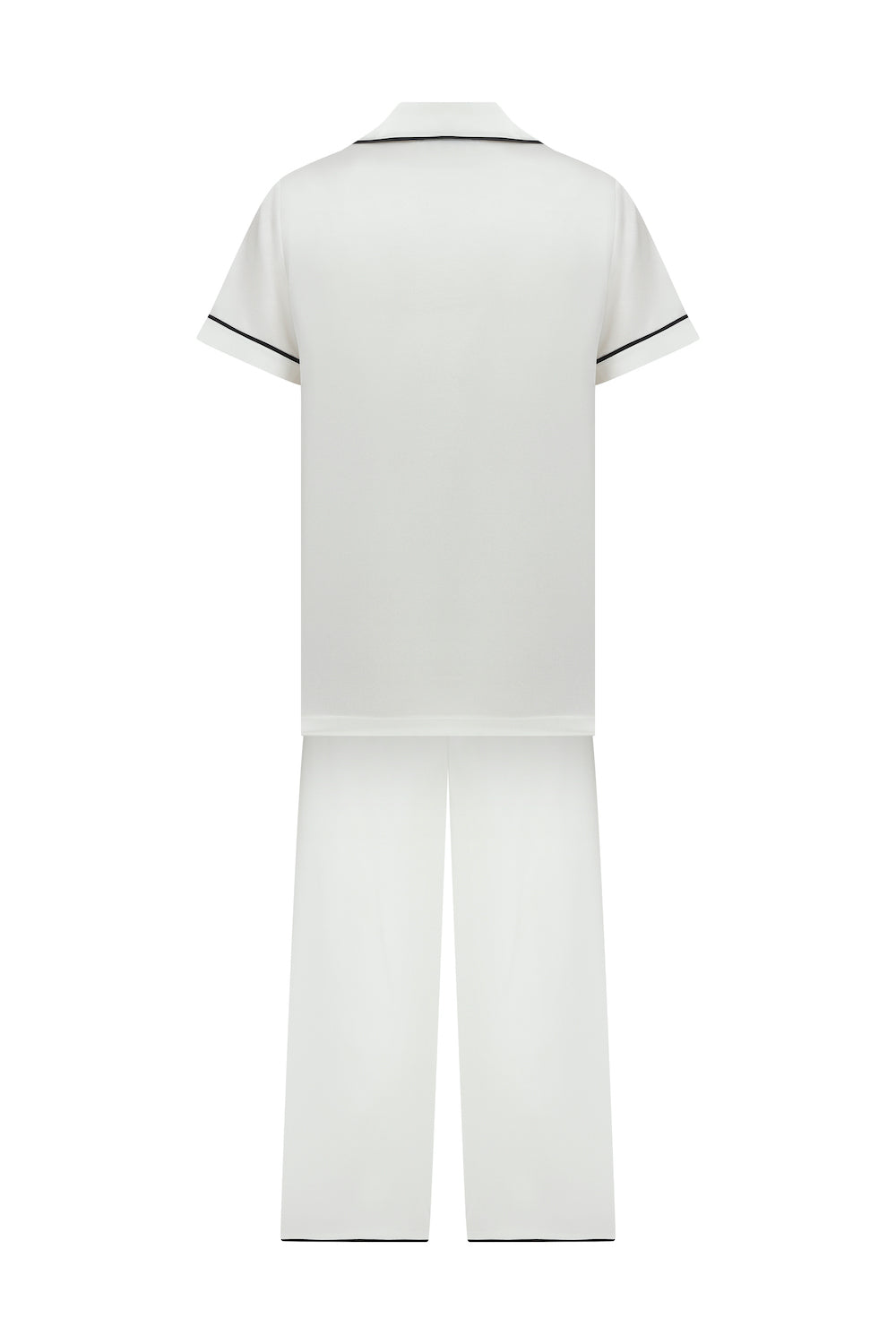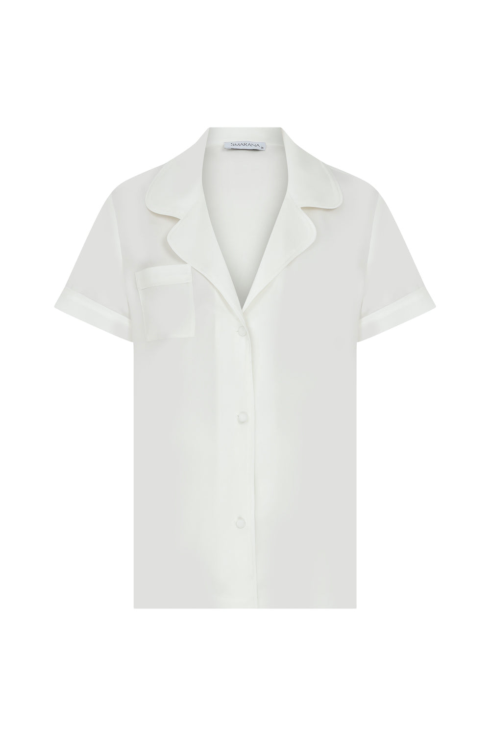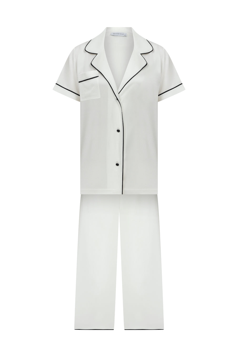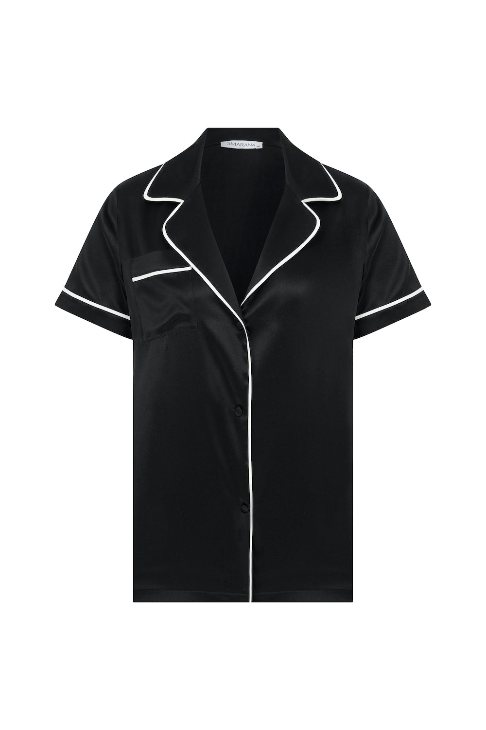 Çiçek Desen Cotton Biye Detaylı Pijama Üst
