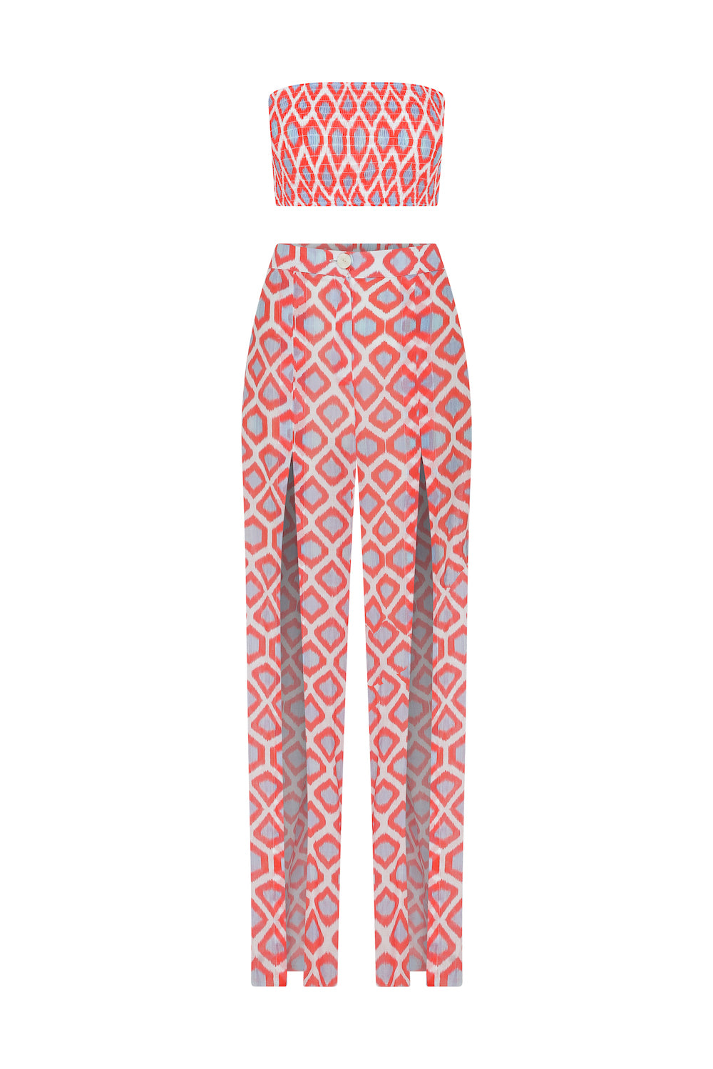 Ön Yırtmaç Detaylı Navy Flower Pantolon