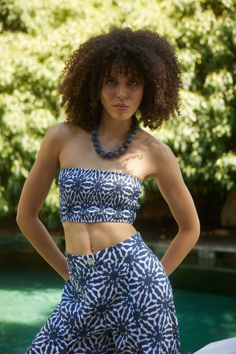 Ekru - Lacivert Bustiyer Pantolon Plaj Takım
