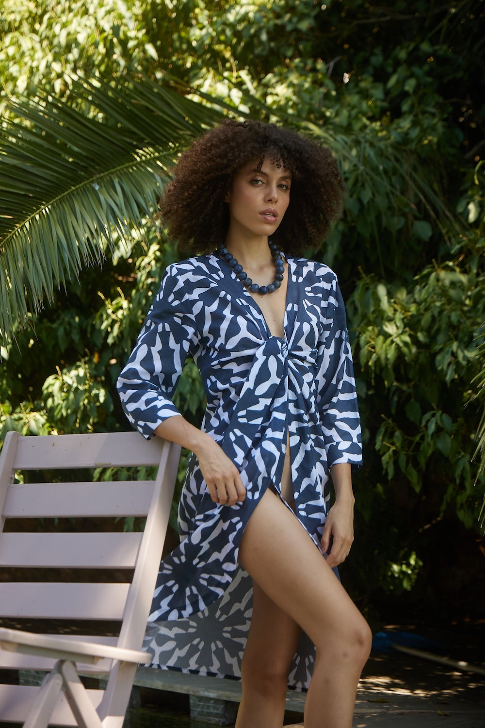 Çift Bağlama Detaylı Navy - Blue Plaj Kaftan