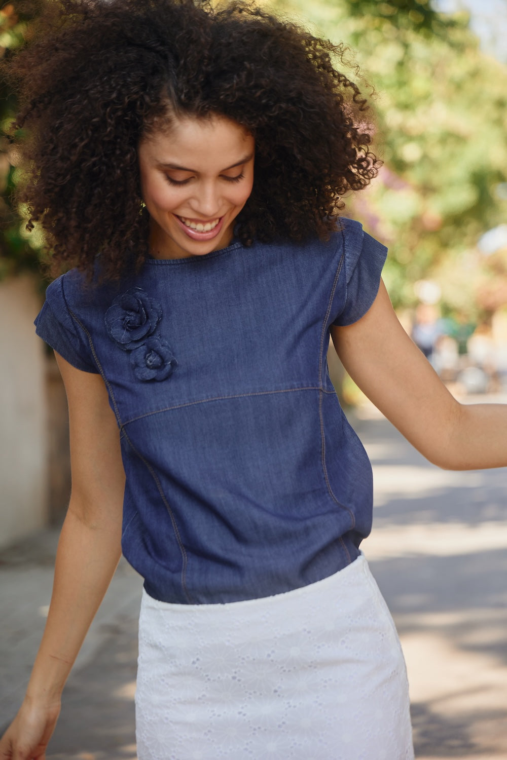 Dikiş Detaylı Yıkamalı Jean Bluz